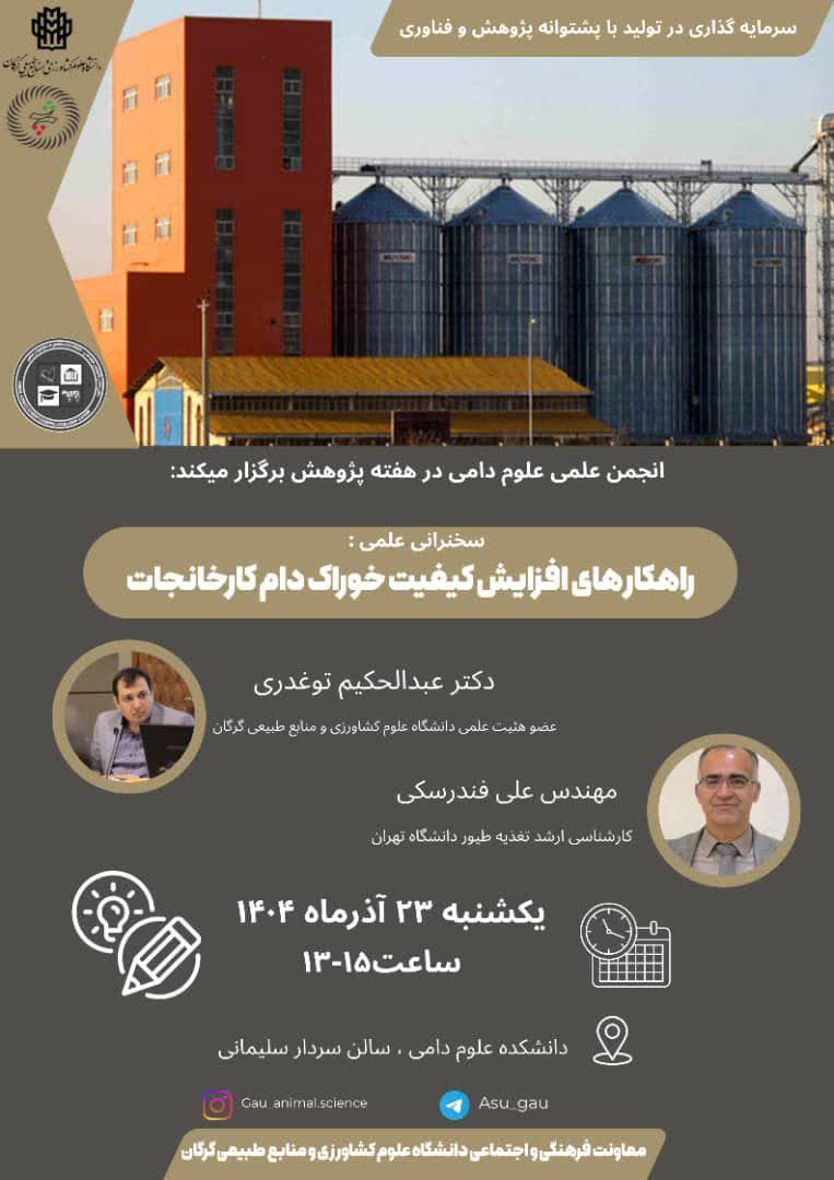 سخنرانی علمی راهکارهای افزایش کیفیت خوراک دام کارخانجات