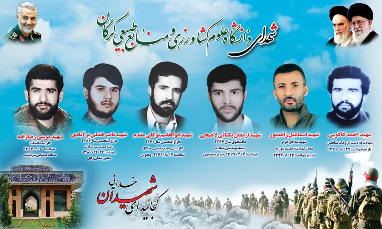 دانشگاه علوم کشاورزی و منابع طبیعی گرگان از بدو شکلگیری حرکت انقلاب اسلامی و متعاقب آن جنگ تحمیلی، در حوادث انقلاب و جنگ تحمیلی حضور پررنگ و شایان توجه داشته است. به عنوان نمونه، انجمن اسلامی دانشجویان دانشگاه علوم کشاورزی و منابع طبیعی گرگان در خلال اوج گیری گفتمان انقلاب اسلامی تأسیس و راهاندازی شد و بسیاری از اعضاء آن در مبارزات مردم انقلابی شهرستان گرگان علیه رژیم ستمشاهی مشارکت داشتند. همچنین پس از پیروزی انقلاب، دانشجویان، اساتید و کارکنان دانشگاه، ضمن تأسیس تشکلها و نهادهای اسلامی دیگر همانند انجمن اسلامی کارکنان، پایگاه بسیج دانشجویان، پایگاه بسیج اساتید و پایگاه بسیج کارکنان در تحولات جامعه، حضوری چشمگیر داشتند. در همین راستا بسیاری از اعضاء این تشکلها به صورت داوطلبانه در دفاع از تمامیت ارضی و ارزشهای انقلاب اسلامی در هشت سال دفاع مقدس و سایر عرصههای نظامی و دفاعی حاضر شده و نسبت به میهن خود و دستاوردهای انقلاب انجام وظیفه و ادای دین نمودند. برخی از اعضاء جامعه دانشگاهی جان بر سر پیمان نهاده و به فیض عظمای شهادت نائل گشتند و بسیاری دیگر نیز در قامت جانبازان و آزادگان باعث افتخار دانشگاه و شهیدان زنده جامعه دانشگاهی هستند. همچنین پیکر مطهر شهیدی گمنام از شهدای هشت سال دفاع مقدس نیز در پردیس دانشگاه به خاک سپرده شده و بر سر آن زیارتگاهی بنا شده است. مزار مطهر این شهید گمنام، میعادگاه عاشقان و ارادتمندان به شهدا و شیفتگان فرهنگ ایثار، جانبازی و شهادت طلبی است.